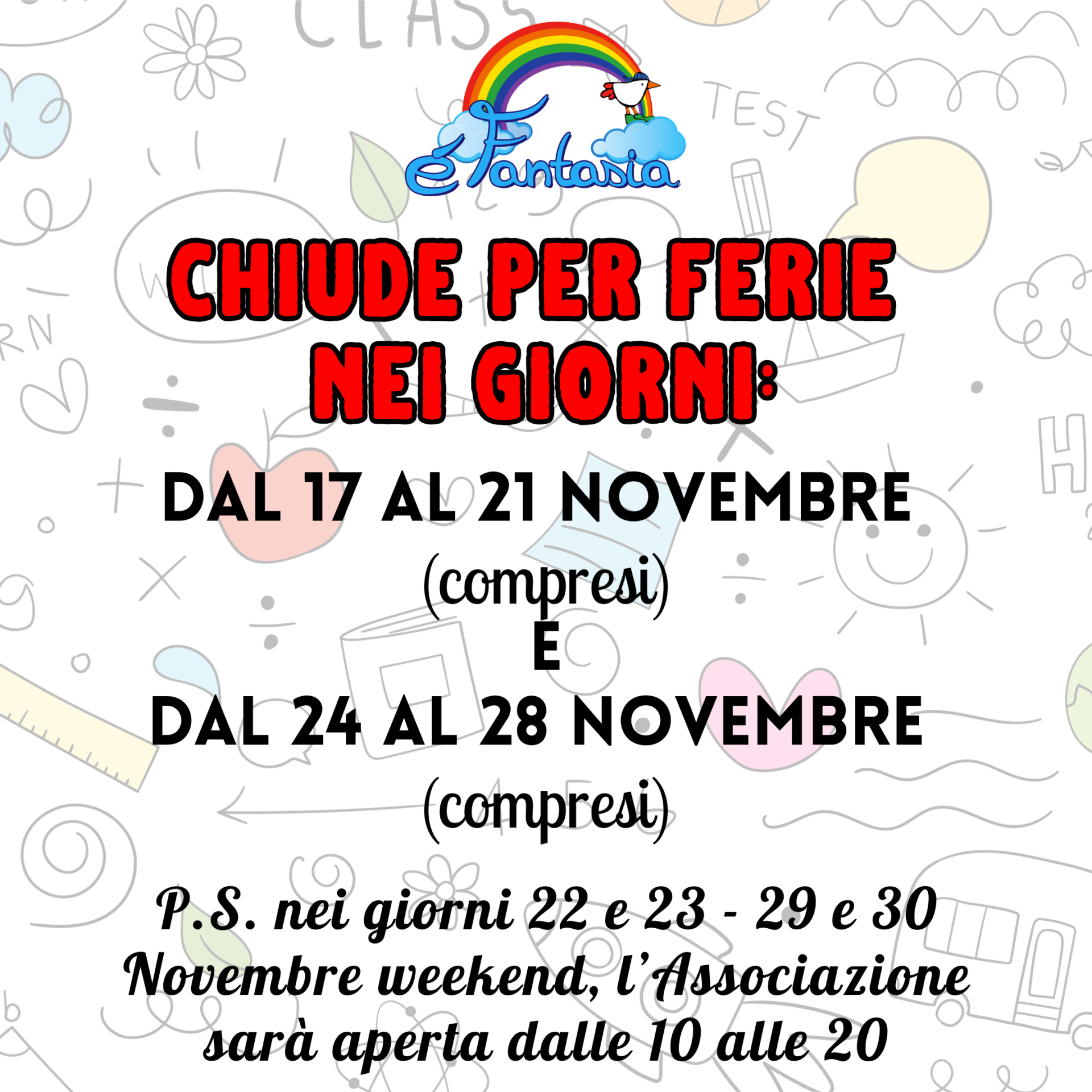 Domenica 16 Novembre 2025da è FantasiaI FANTALABORATORICari soci, questa domenica 16/11 dalle ore 16 alle 18:30 è Fantasia si prepara a vivere una esperienza di creatività e immaginazione, insieme alla nostra collaboratrice i bimbi daranno sfogo alla fantasia...
